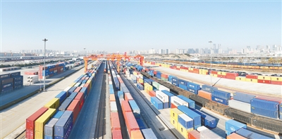 郑州国际陆港整装待发的中欧班列 本报记者 马健 摄