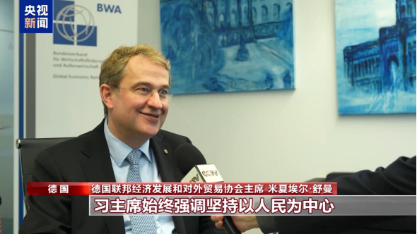 德国联邦经济发展和对外贸易协会主席 米夏埃尔·舒曼:习主席始终强调坚持以人民为中心,这一重要理念值得全球关注。在欧洲,发展不平衡问题加剧令人担忧,对此我们需要思考和调整。